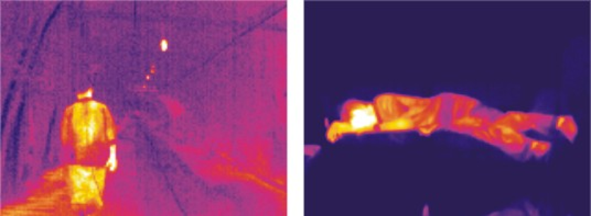發(fā)生礦難后,井下沒有光源、煙氣濃重、煤塵覆蓋住遇險者或由于險情阻礙,都可能妨礙救護人員發(fā)現(xiàn)遇險者,搜救人員攜帶便攜式熱像儀通過偵測受傷者與周圍溫度及熱理的差異可以遠距離快速定位遇難人員的準確位置,形成直觀的人途熱圖像。