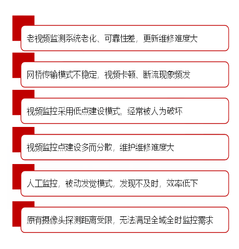 防患于未然,是我們面對化工安全的首要態(tài)度。然而,化工行業(yè)傳統(tǒng)的災(zāi)害防范手段存在著諸多痛點(diǎn):效率低下且不說,潛在的安全隱患不能被及時發(fā)現(xiàn)才是最大的問題。以傳統(tǒng)的單光視頻監(jiān)控系統(tǒng)為例,其在使用過程中存在如下諸多問題。