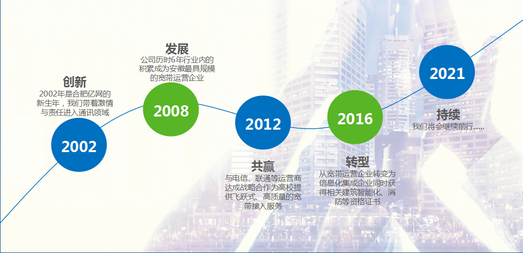 合肥市億網(wǎng)科技有限公司于2002年新生于合肥市區(qū)重點(diǎn)高校園區(qū)內(nèi),起始團(tuán)隊(duì)只有數(shù)名成員。歷經(jīng)二十載的歲月沉淀,回望來路發(fā)展道路幾多艱難,億網(wǎng)人披荊斬棘,努力奮斗,緊跟時代發(fā)展的腳步,成功轉(zhuǎn)型為以“互聯(lián)網(wǎng)+”為支撐平臺的智能化科技型公司。